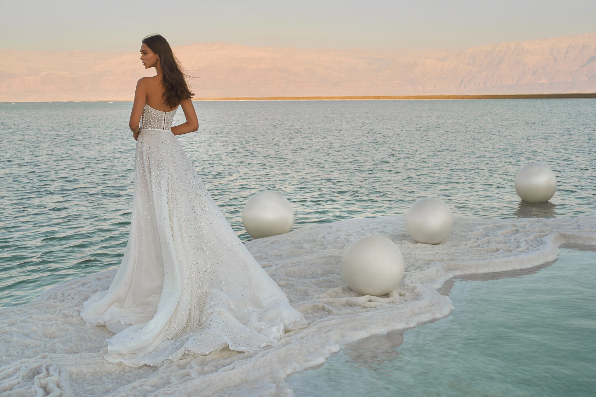 Ball gown with corset bodice blouson sleeves and beaded embellishments